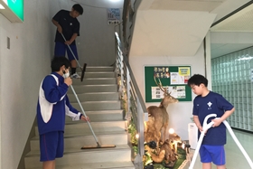 来た時よりも美しくを目標に掃除を頑張りました。部屋や廊下だけでなく、流し場や階段も掃除をしました。この後、点検を受け、ネイチャークラフトに入ります。