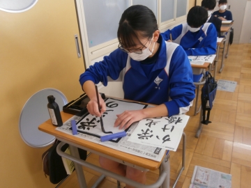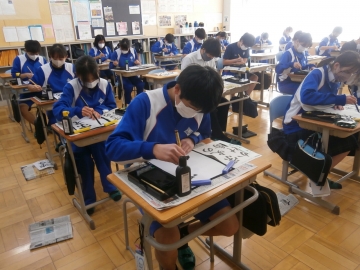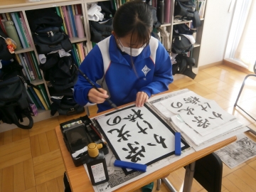 3年生は国語の授業で書道の学習をしています。