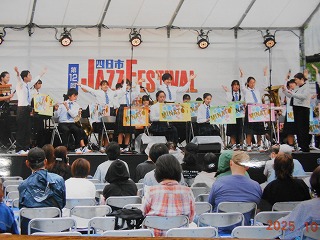 18日(土)に、本校の吹奏楽部が「四日市ジャズフェスティバル」に参加をしました。オープニングパレードでは、他のグループと一緒に四日市商店街を練り歩いたことが19日(日)の中日新聞(広域三重版)でも紹介されました。その後、メイン会場の市民公園でも8曲の演奏を行い、会場を沸かせました。