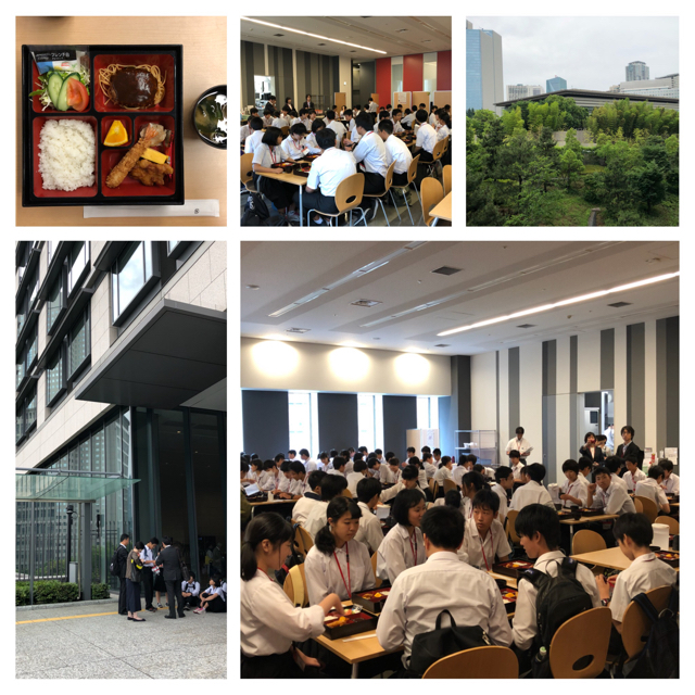 綺麗で立派な建物に驚きながら、通行証を一人ずつ受取り入館し、お弁当昼を食べました。隣の建物は総理官邸です。