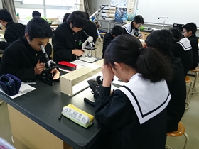 今日の1限目の理科の授業(B組)では「顕微鏡の使い方」を学習しました。自分の定規を顕微鏡にセットし、基本的な使い方、調整の仕方などを学びました。