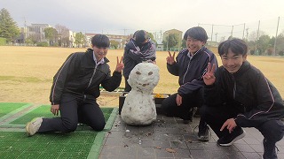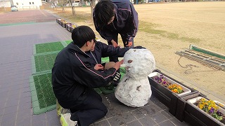 昨日の大雪には驚かされましたが、日中には太陽の日差しを浴びてみるみると溶けていきました。それでも、一部の生徒が校庭の端に残っていた雪を集めて「かわいい雪だるま」を作成してくれました。昇降口前に作ってくれたので、全校生徒の心がほっこりと温かくなりました!