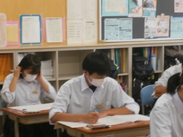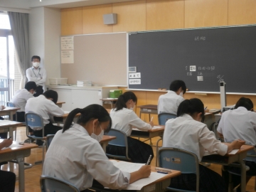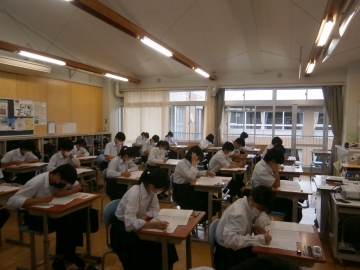 県立高校の入試と同じ国語、数学、社会、英語、理科の順番で行いました。