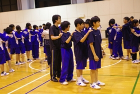 キャンドルファイヤーの最後は「じゃんけんジェンガ」で大きな輪をつくり、「マイムマイム」を全員で踊って大きく盛り上がりました。入学して初めて、クラスのみんなで話し合ってとりくんできたクラスの出し物も成功したと思います。これを初めとして、これからもクラスや学年の仲間の輪をつくり上げるために頑張っていきましょう。