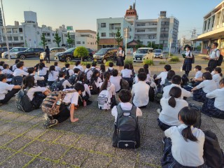 着きました、四日市。全員揃って解散式を行います。みんな三日間頑張ったね。思い出をお土産に、久しぶりのわが家でゆっくり休みましょう。いい夢みてね。