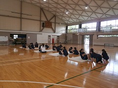 今日の1年生体育科では「自分の体力を分析することができる」というめあてで、学習を行いました。はじめに、ラジオ体操からリズムに合わせたトレーニングを行い、その後「上体起こし」を友だちと協力し合って行いました。