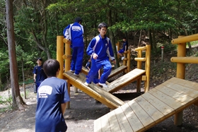 合格した班が出始めました。12時までは部屋に戻らないルールになっていますので、早く戻ってきた班は、新しくできたアスレチックで遊んでいます。まだまだ元気です。