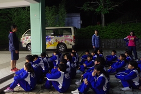 予定通りにナイトハイクを終えました。この後は入浴。各クラス20分ずつの時間があります。入浴していない時間を利用して「しおり」の記入などを行ないます。