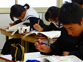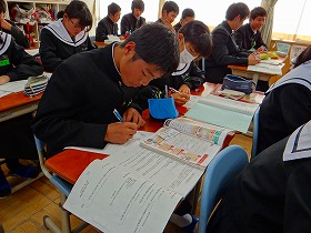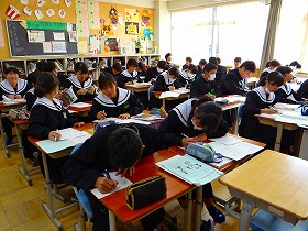 中には、辞書や国語の便覧で調べて各生徒もおり、一生懸命感謝の気持ちを伝えようとしていました。