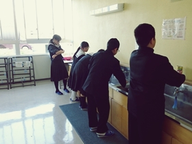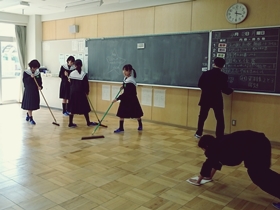 簡易清掃の期間が終了し、今日から担当掃除区域別の本格的な掃除が始まりました。1年生は掃除道具の場所、手順などをそれぞれ担当の先生に聞きながら、初めての15分間清掃に臨みました。まだ不慣れながらも、それぞれの区域で一生懸命頑張っていました。挨拶と掃除が伝統の港中学校、その一員となるべく、これからさらに頑張っていってほしいと思います。
