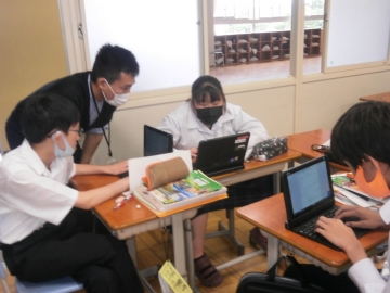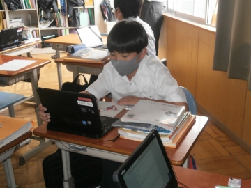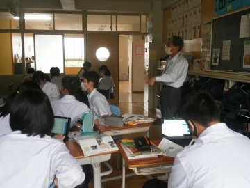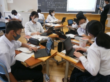 です。もちんのこと、教科書やタブレットを使って資料を調べたり、自分の考えをまとめたり、さらには友だちの意見を聞いてさらに自分の考えを深化する生徒もいました。