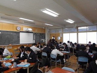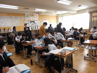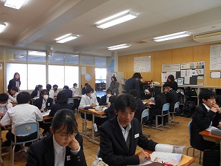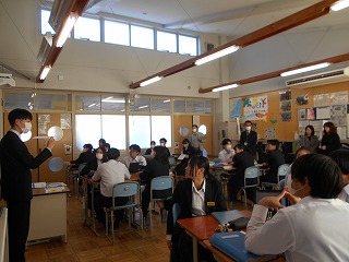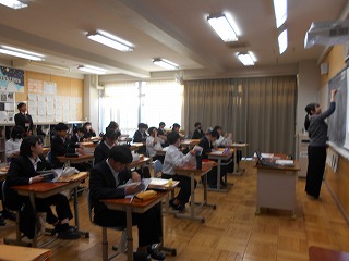 本日の午後には「港中学校区学びの一体化合同研修会」を行いました。5限目には、担任による授業公開を行いました。浜田小学校の先生方が熱心に参観され、生徒たちはいつもより一段と集中して授業を受けることができました。