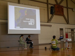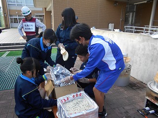 今日は浜田地区自主防災組織連絡協議会主催の「浜田地区防災訓練」を兼ねて土曜授業を行いました。本校の体育館を避難場所として、地域の方々は避難訓練「逃げる訓練=まちあるき」をテーマに参加しました。はじめに、浜田小学校児童の「防災まちあるき」報告がされ、続いて減災アドバイザーで連合副会長様による「カムチャッカ半島南東沖地震による津波体験」の話をしていただきました。その後、自衛隊三重地方協力本部の方による、「東日本大震災の災害派遣現場から得た教訓について」のお話がありました。最後に三重大学大学院工学研究科 建築学専攻教授川口様から講評をいただきました。四日市で9月12日に想定外の豪雨に見舞われた経験を生かし、「マニュアル主義からの脱却」を目指す話が印象に残りました。外では、アルファ米の炊出し訓練も行われており、昼食としてありがたくいただきました。3年生からもボランティアでアルファ米作りを行いました。中学生としてできることについて、考える大切さを学ぶ機会となりました。