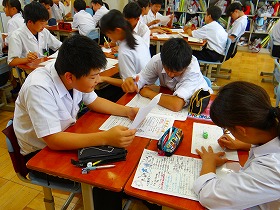 できた原稿を実際に同じグループのメンバーに聞いてもらい、どうすればもっと良い発表になるのかアドバイスをもらったり、反対にアドバイスしたりしました。明後日木曜日には、クラス内で発表会を行う予定です。