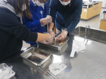 今日EF組は、理科でイカの解剖をしました。