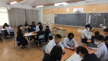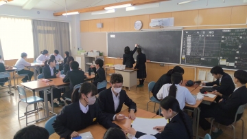 2学期のクラスの振り返りをしました。次はいよいよ中学校最後の3学期になります。この2学期の振り返りだけでなく、これまでの振り返りを活かして、3学期を最高のものにして卒業式を迎えられるようにしましょう。前に立って司会をしてくれている学級役員の皆さん、いつもありがとうございます。