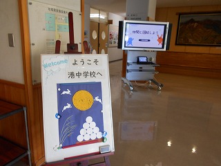 今日は、今年の中秋の名月の日です。「中秋の名月」とは、太陰太陽暦の8月15日の夜に見える月のことだそうです。中秋の名月をめでる習慣は、平安時代に中国から伝わったと言われています。日本では、中秋の名月は農業の行事と結びつき、「芋名月」などと呼ばれることもあるそうです。今日はどんな月が見れるか楽しみですね。港中学校では、現在ウェルカムボードが「中秋の名月」となっています。、あた、今日の給食には「お月見ゼリー」がだされました!蓋をあけるとかわいいウサギの形をしたゼリーも入っていました!生徒たちも大喜びでした!!