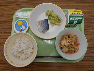 (本日のメニュー:大根と里いものそぼろ煮、さばの塩焼き