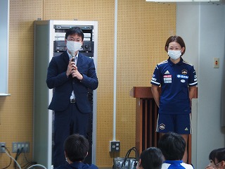「地域のクラブチームから学ぶSDGs」と題して、地元にある女子ラグビーチーム「パールズ」から飯田さんと三谷さんにお越しいただきました。