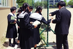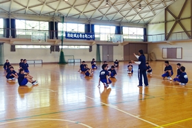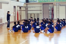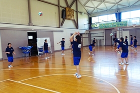 今日の3限目の保健体育(A組)はバレーボールの授業。オーバーハンドパス、アンダーハンドパスの基本を教えてもらい、ペアになって練習を繰り返していました。後半からはサーブの練習に入りました。