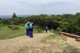 さて、このウオークラリーは各ポイントで先生たちから問題が出ます。正解するとヒントカードがもらえ、たくさん集めた方がゴールでの問題を解きやすくなります。味村のいる展望台での課題は二つ。一つは班員みんなで仲良く写真に写ること。もう一つは3分以内に「展望台」という言葉を使って五・七・五の俳句(無季俳句)をつくることです。ただし、言葉の使い方や内容を見て合格が決まります。もちろん、時間内に何度チャレンジしてもOKです。