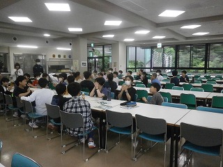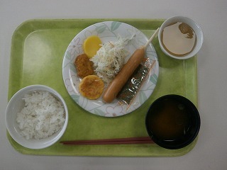 ラジオ体操の後は朝の集い、朝食です。朝食は「和洋朝食」。この後、部屋の掃除をした後、野外炊事に取り組みます。