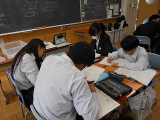 今日の2年生の数学では、「平行四辺形の性質を理解する」というめあてで、授業を進めました。班で話し合いながら、「平行四辺形」の特徴について意見を出し合いました。