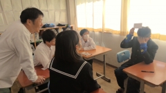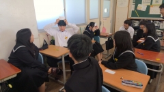 贈呈のセレモニーでは、民生委員の方から「高齢者の方々は、この取り組みを楽しみにしていらっしゃる」と伝えていただきました。作製した色紙で、喜んでいただけたり、元気づけることができることがうれしいですね。