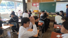 約20年にわたり、地域に住む一人暮らしの高齢者の皆さんを元気づけるために色紙を作製しています。今年度は、神前地区の方々に、神前小の児童のみなさんが作った折り鶴と一緒に、地域の民生委員の方を通じて届けていただいています。その贈呈式が3日に行われ、福祉委員長等が出席しました。