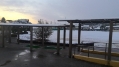 深夜のあいだに雪が降り、今朝のグラウンドは一面の雪景色となっています。