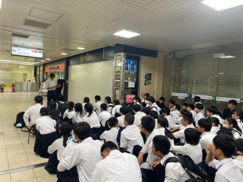 朝早い時間でしたが、みなさん、予定どおり集合完了!いい顔で「おはようございまーす!」と元気な挨拶が交わされます。実行委員さんによる出発式が終わると、自然と大きな拍手がおこり、あたたかな空気に包まれます。これでこそ、三滝中だな~。