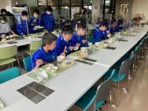 ○朝の集い・朝食の一コマです。
