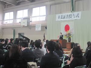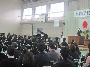 式の開始直後は、卒業生の表情からは緊張感が感じられましたが、時間の経過とともに和らいできたようでした。(本市の市長から直接お言葉をいただけたことも思い出に残るのではないでしょうか。)