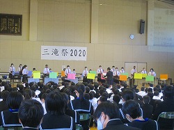 どの学年も、このメンバーで、この舞台で、合唱を披露するのは人生で一度きりです。1・2年生の人には、来年があります。メンバーは変わりますが、今年の取り組みを活かしていけるようにしてほしいと思います。学級の仲間が同じ気持ちで取り組めば、必ずいい合唱につながるでしょう。3年生の皆さんにとっては、最後の三滝祭でした。3年生の三滝祭に向けて取り組む姿は、1・2年生にもいい影響を与えてくれました。「自分たちも3年生になったら…」という気持ちになった1・2年生もいたと思います。