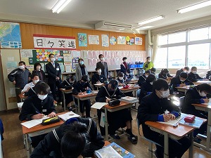 また、今日は県立高等学校前期選抜学力検査の2日目が行われ、本校3年生の一部の人が出席しました。これまでの成果が発揮できていたら幸いです。今回、前期選抜を受けた人は、県立高校受検の雰囲気をしっかりと感じられたことと思います。また、気づいたことなどを後期選抜を受検する人に伝えられるといいのではないでしょうか。その後期選抜学力検査まで後約1か月余りです。受検を予定する人は、体調に気を付けて準備を進めていきましょう。