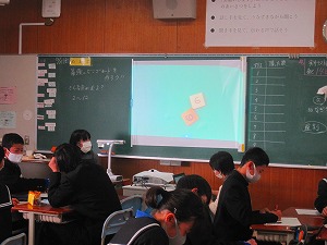 【2年4組の数学の授業を参観させてもらいました。『確率(かくりつ)』の学習でした。】