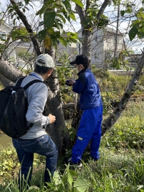 この土曜日には、その取り組みの一つとして、それぞれの木にナンバリングのためのプレートを付ける作業が行われ、三滝中学校からも約30名の生徒がボランティアに参加してもらいました。