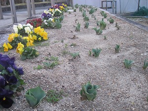 チューリップも力強い感じで土の中から姿をあらわしてきました。