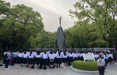 原爆の子の像の前で、平和を祈念するセレモニーを行いました。