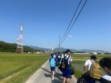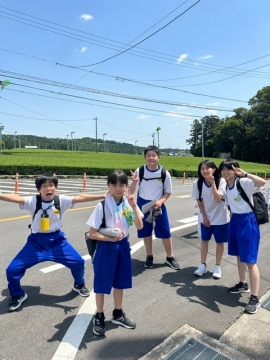 とっても爽やかな青空のもと、新緑をバックにしてウォークラリーは順調に進んでいます。
