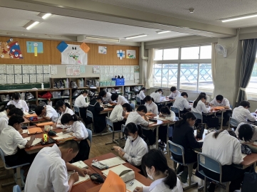 3年生の数学の先生が、「いやぁ、今3年生は各クラスでそれぞれテーマを決めて、独自の取り組みをしているようですよ」と特大の笑顔で話しています。なんだか、嬉しそうだし、楽しそう。聞けば、期末テスト前までのキャンペーンのようで、3-1は「コミュニケーション祭」だそう。班での活動、全体交流の場で、自分から話すようにしたり、しっかり受け止めたりすることを意識するのかな。このキャンペーンを学習の追い風にできるといいですね。