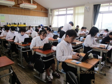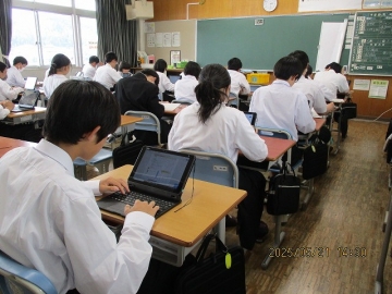 今日は久しぶりに3学年がそろい、にぎやかな学校です。1年生は自然教室、2年生は職場体験の新聞づくりを行いました。2学年とも、生徒自身が、紙かタブレットかを選んで作成しています。真剣なまなざしがいい!友達や先生にアドバイスをもらいながら、よりよいものにしようと一生懸命です。