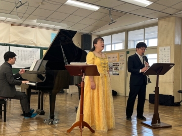 今回は、ピアニストの秀平さんとクラリネット奏者の瀬戸さんをお招きし、伊藤理絵先生の美声を合わせて、心に響く演奏が届けられました。