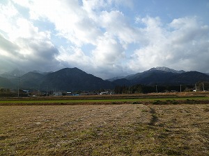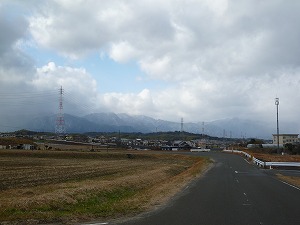 鈴鹿山脈です。鈴鹿山脈は、三重県、岐阜県、滋賀県の境(さかい)に位置し、この学校の窓からも見ることができる最も身近な山脈です。