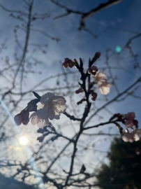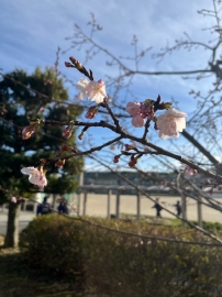 気の早い桜の木はまだ一本だけですが、3年生の皆さんのはなむけに、何ともめでたい出来事です。どうぞみなさん、愛でてあげてください。