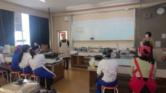 お米の食べ比べクイズでは、カリフォルニア米と比較して給食に使われている三重県産コシヒカリを見た目やにおい、味から考え当てました。調理実習では、旬のさつまいもを使ったスイーツをたくさん作りました。家庭の授業で学んだことも生かしながら、さつまいもを薄くスライスしたり、つぶして生地にしたりして、楽しく美味しくできました♪手際よく洗い物や後片付けをする姿も見られてよかったです。