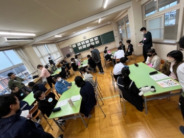 後半は学校ごちゃまぜのグループを作り、”アドジャン”形式で自分のことを伝える活動を行いました。今欲しいものといった簡単な自己紹介から始まり、最後は人権につながる話で交流となり、校種、学校を超えていろんな話をして有意義な時間を過ごせました。