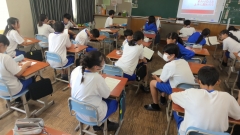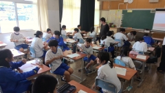 真剣に考え、ワークシートに記入する姿や近くの生徒と積極的に話し合う姿が見られ、生徒からは「改めて無視や悪口は良くないと感じた」や「今日学んだことを普段から意識していきたい」などの感想が多くあり、これからの日常生活に生かしてそうとする姿が見られました。