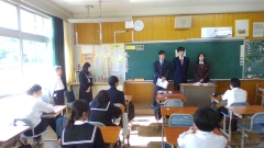 中学校時代の思い出や高校生になって感じたこと、人権教育の大切さなど自身の経験を話してもらいました。生徒からの質疑応答では、いつから受験勉強をはじめたのか、定期テストや受験の時に気を付けていたことはなにかなど積極的に質問をしている姿が見られました。