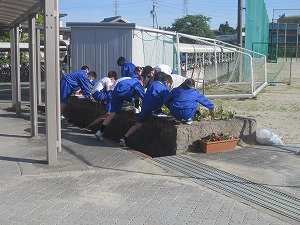 緑化委員会の取組の様子です。花壇で除草作業を行っていました。暖かい天気が続いていたからか、植物がすくすくと?生長していました。